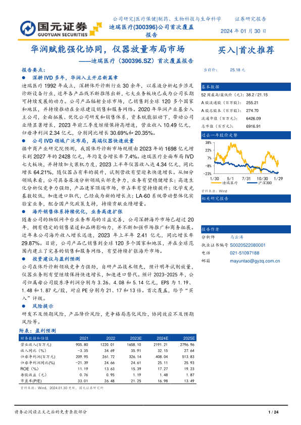 首次覆盖报告:华润赋能强化协同,仪器放量布局市场
