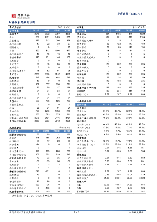报告维持对毕得医药的“买入”评级,并基于对公司未来营收和净利润的预测,给出了2023-2025年的盈利预测和估值,认为公司具有较好的投资价值。