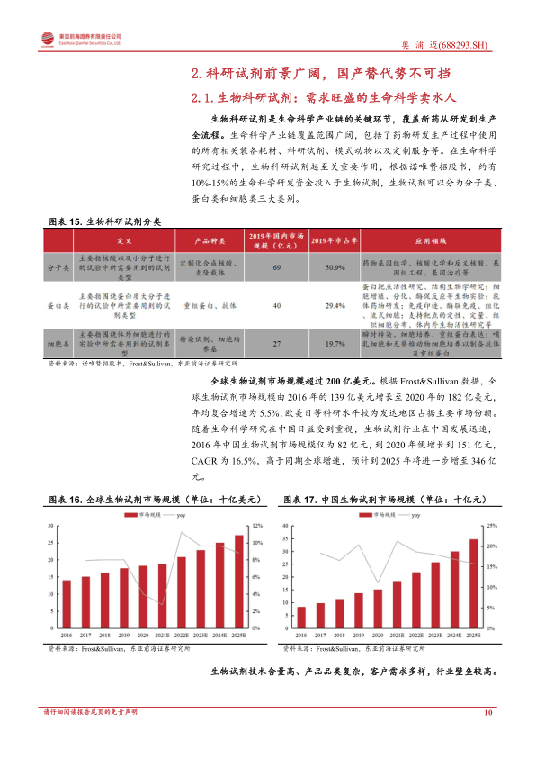 生命科学上游稀缺标的,细胞培养基市占率国产第二。细胞培养基行业空间大壁垒高,目前主要为外资占据,国产替代空间大。公司作为A股培养基第一股具有稀缺性,研发实力突出,目前已经开发出上百种培养基产品,核心性能不输进口产品,市占率排名国产厂商第二,在中高端蛋白/抗体药物细胞培养基领域排名国产第一,仅次于赛默飞、丹纳赫、默克等进口厂商。