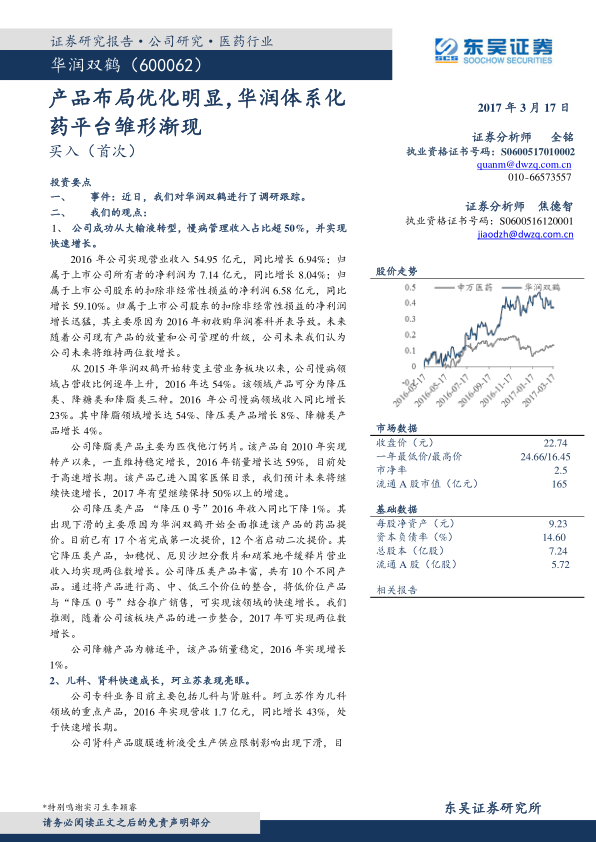 产品布局优化明显,华润体系化药平台雏形渐现