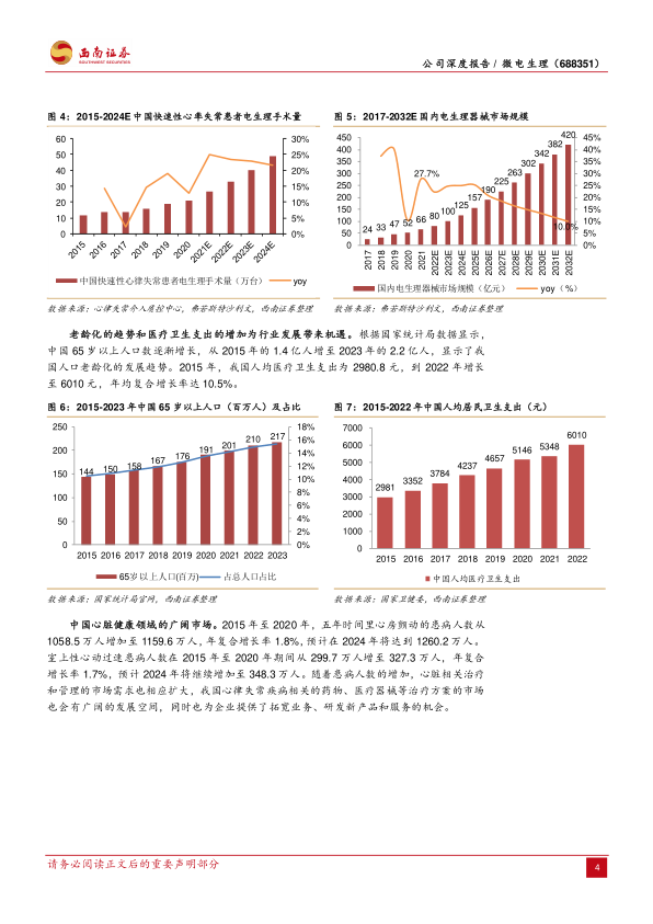 微电生理(688351)作为国内电生理介入及消融治疗领域的领先企业之一,正受益于中国电生理手术量的持续增长和器械市场规模的不断扩容。随着人口老龄化加剧、心律失常患者基数扩大以及消融手术普及率提升,预计2024年电生理器械市场规模将达到125.5亿元。当前,国内电生理器械市场国产化率仅为10%,外资品牌长期垄断,为国产厂商提供了广阔的进口替代空间。微电生理在房颤治疗领域率先突破,通过全面布局三维系列产品,并积极响应带量采购政策,有效推动了国产替代进程,实现了营收的显著增长。