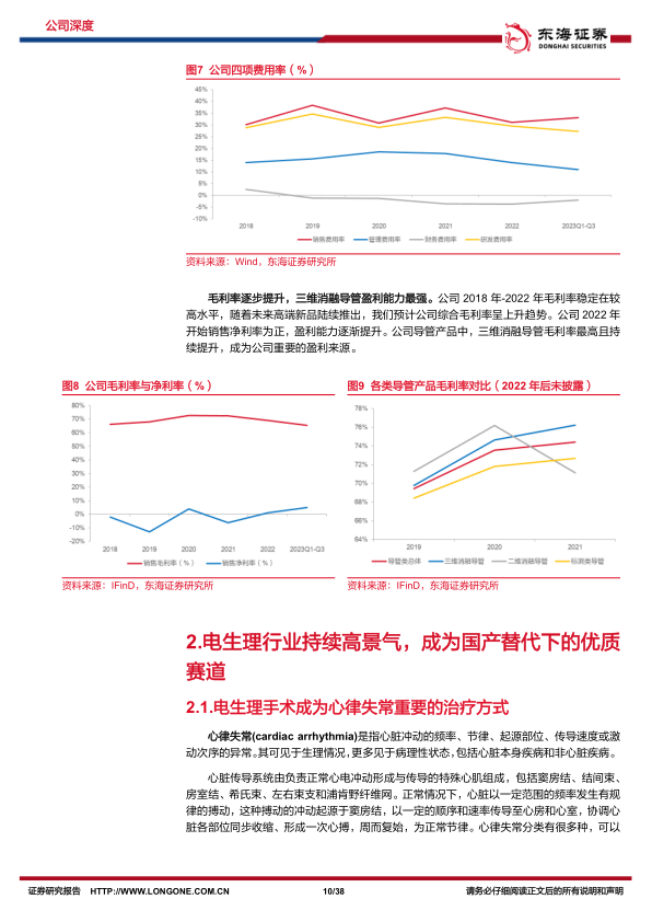 立足研发创新,高技术壁垒彰显国产领军实力:1)公司电生理标测系统达国际先进水平:第四代三维标测系统是市场上最有力的竞争者之一,为超高端导管提供强大平台。2)导管满足各类临床使用场景,引领国产品牌。公司拥有国产唯一的磁定位标测导管产品线、国产唯一可用于治疗房颤的磁电双定位消融导管和国产唯一的压力监测磁定位射频消融导管。3)冷冻消融重磅新品上市,有望贡献业绩新增量。高端新品冷冻消融设备和导管性能优越,创新多通道温度传感技术提升手术安全性和有效性,随着新品国内市场持续开拓,其有望成为公司未来重要的盈利来源。