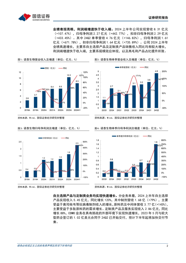 本报告分析了诺泰生物2024年上半年的财务业绩,指出公司在营收和利润方面均实现了显著增长,盈利能力得到提升,并在产能布局方面具有领先优势。报告强调,在GLP-1药物大单品的带动下,多肽产业链有望维持高景气度,公司通过加大矩阵式销售模式拓展力度,有望在订单和业绩端持续取得突破。因此,维持对公司“优于大市”的投资评级。
