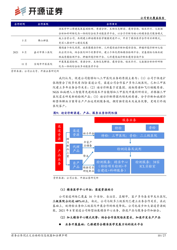 综合分析,迪安诊断凭借其“服务+产品”诊疗一体化业务布局,通过精准中心模式与三甲医院深度合作,有效推动了特检和自产产品业务的快速增长。公司在渠道、产品和服务之间的业务协同性显著,同时具备优秀的成本费用管控能力,并能有效控制应收账款和商誉减值风险。