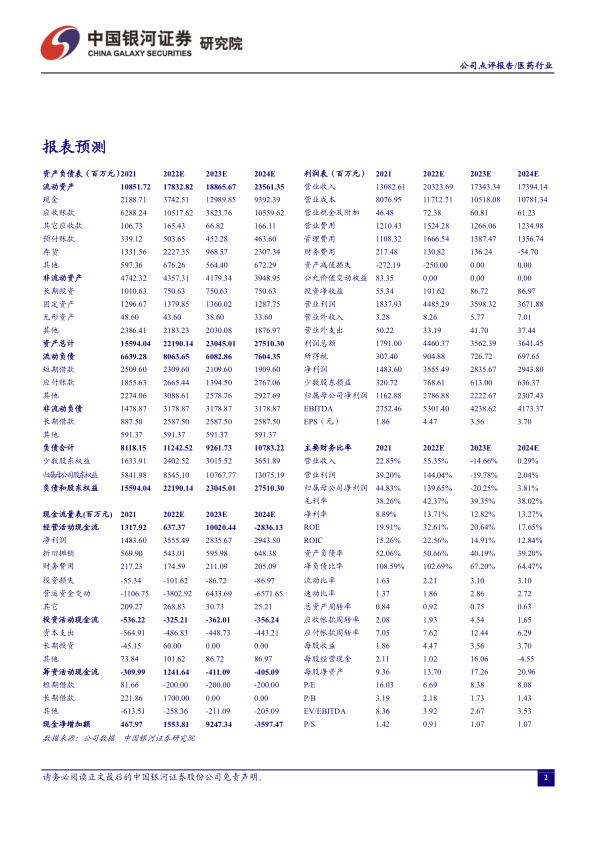 风险提示:检验服务与医院结算价格下滑幅度超出预期的风险、新冠疫情影响常规检测业务的风险、亏损实验室业绩表现不达预期的风险等。