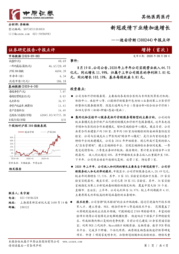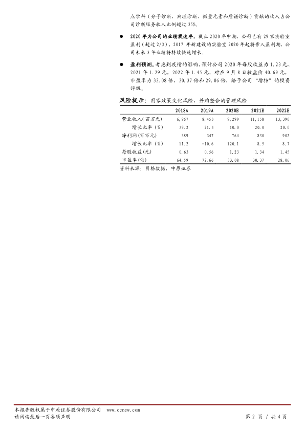 本报告分析了迪安诊断在新冠疫情下的业绩增长,以及公司在集约化和区域检验中心转型、技术驱动和平台建设方面的优势。报告指出,迪安诊断通过提供新冠病毒检测服务,实现了收入和利润的显著增长。公司正积极转型,通过集约化和区域检验中心模式,提升特检业务的协同发展。同时,公司坚持技术驱动战略,通过引进人才和建立高端技术平台,形成了难以复制的竞争优势。预计公司未来3年业绩将持续快速增长,给予“增持”的投资评级。