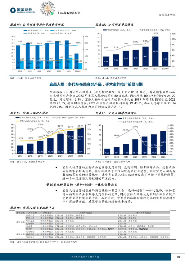①Epic多元产品分散风险,管制类药品生产资质稀缺;新疆维药疆内外市场覆盖率大幅提升,产品营收首次过十亿;葛店人福高端原辅料业务持续拓展,国际化布局稳步推进。②2023年公司研发费用约为14.62亿元,同比增长51.21%,占医药工业收入比率首次超过10%、达到11.2%。公司目前共有在研项目500多个,其中一类新药30多个,全面布局创新药及高端仿制药。③下肢缺血性疾病存在加大为满足需求,包括公司的创新疗法重组质粒-肝细胞生长因子在内,目前仅有两款同类产品进入三期,因此公司产品具备先发优势。