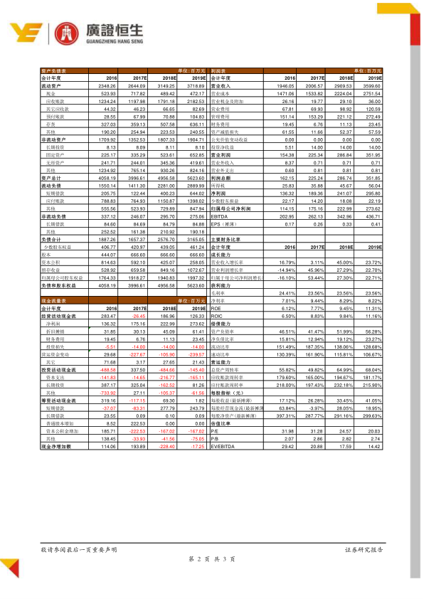 根据公司现有业务情况,测算公司18-19年EPS分别为0.33、0.41元,对应25、20倍PE,维持“强烈推荐”评级。