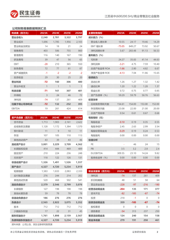 江苏吴中(600200)