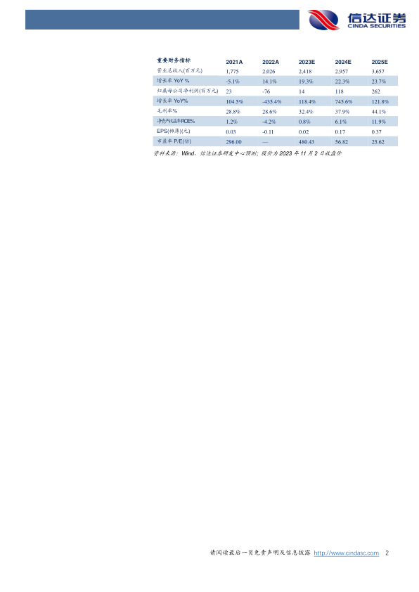 盈利预测及投资建议:我们预计23-25年归母净利分别为0.14/1.18/2.62亿元,11月2日收盘价对应PE分别为480/57/26倍,维持“增持”评级。