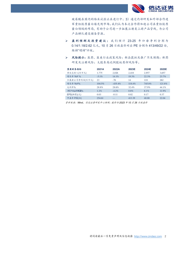 风险提示:医药、医美行业政策风险;新品获批及推广不及预期;新药研发及注册风险;大股东高比例股权质押风险等。