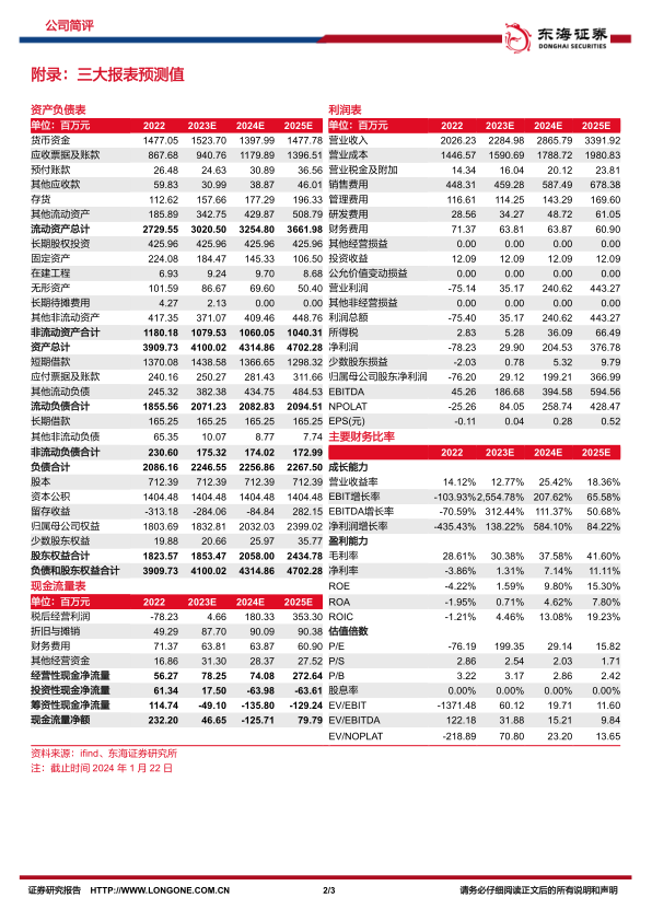 投资建议:公司坚持“医药+医美”战略布局,深耕医药行业的同时,全力布局发展医美业务,利用已成熟的研发实力与经验赋能于医美业务开展,开辟公司的第二成长曲线,有较大的发展空间。我们预测公司2023-2025年归母公司净利润为0.29亿元、1.99亿元及3.67亿元,按2024年1月22日收盘价计算,对应PE分别为199.35倍、29.14倍及15.82倍。维持“买入”评级。