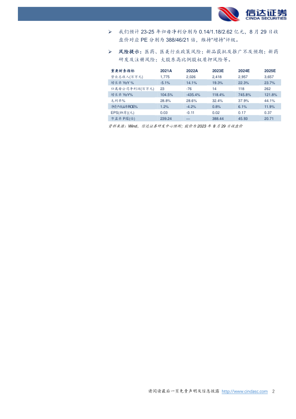 风险提示:医药、医美行业政策风险;新品获批及推广不及预期;新药研发及注册风险;大股东高比例股权质押风险等。