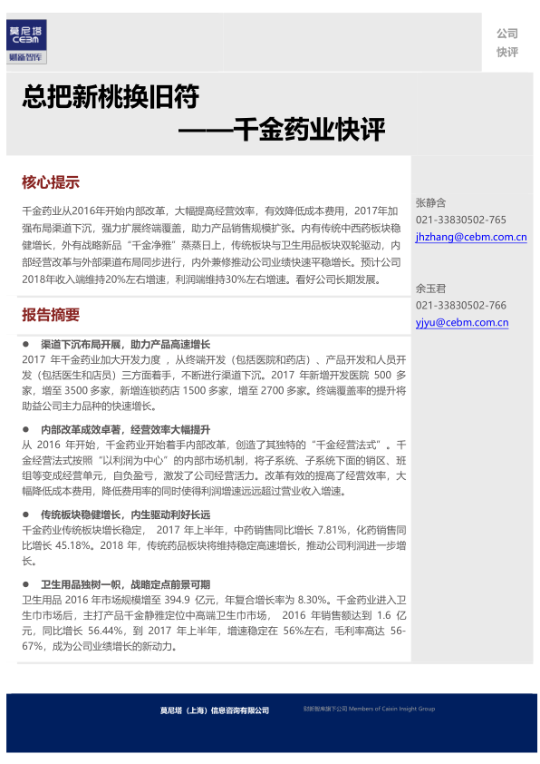 千金药业快评:总把新桃换旧符