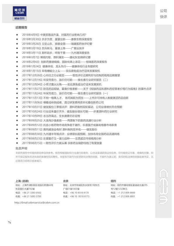 中药板块重点开发县级市场,加大营销信息化建设及履职过程考核,实现中药产品稳定增长;化药板块巩固三大终端,加大连锁药店及公立医院市场开发和新产品市场拓展,实现化药产品快速增长。
