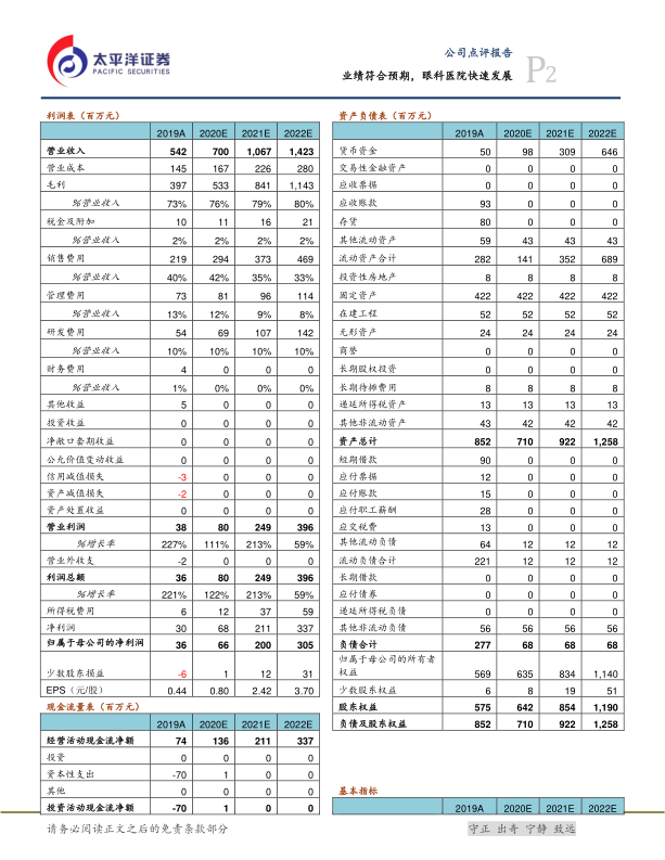兴齐眼药在2019年取得了符合预期的强劲业绩增长,主要得益于积极的市场拓展。公司未来的增长点在于其丰富的创新产品管线(如环孢素滴眼液和低浓度阿托品滴眼液)以及战略性布局的眼科医院业务,特别是其互联网功能的开通,有望显著提升市场覆盖和盈利能力。尽管短期内新冠疫情可能对部分业务造成影响,但眼科医院的良好表现和长期清晰的增长逻辑支撑了公司未来的发展潜力。分析师维持“持有”评级,并预计公司在未来几年将实现持续的利润增长。
