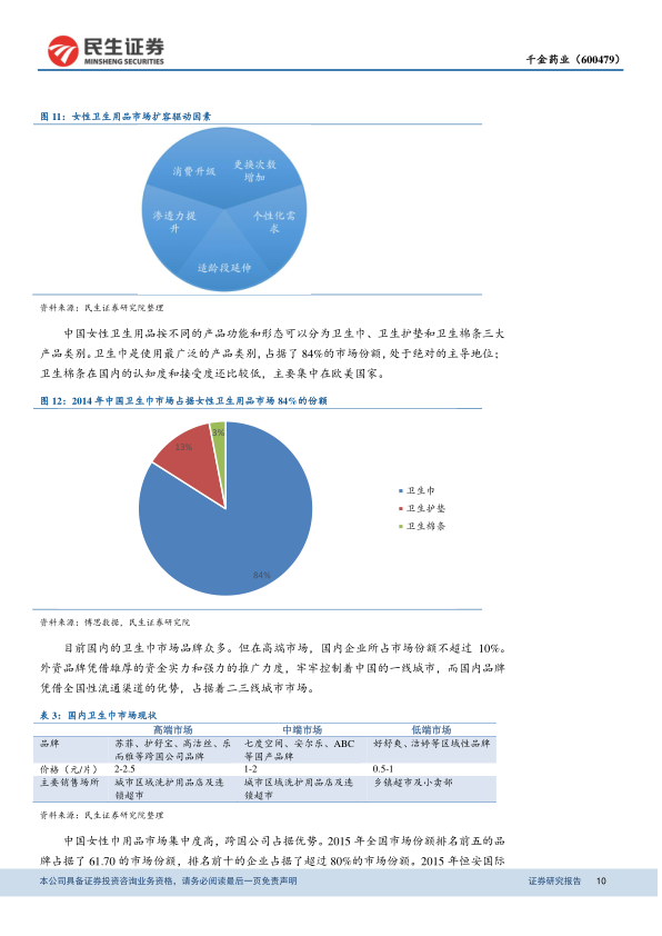 - 2011年成立千金卫生用品公司,推出医用级卫生巾品牌千金净雅,逐步向女性大健康领域布局。