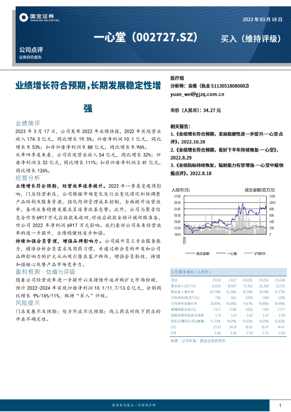 然而,报告也明确提示了潜在风险,包括门店发展可能不及预期、处方外流政策实施效果不达预期,以及线上药店对传统线下药店可能造成的冲击不确定性。这些因素均可能对公司未来的业绩增长构成挑战。历史市场评级数据显示,自2022年3月至10月,市场分析师普遍给予公司“买入”评级,进一步佐证了市场对公司长期价值的认可。