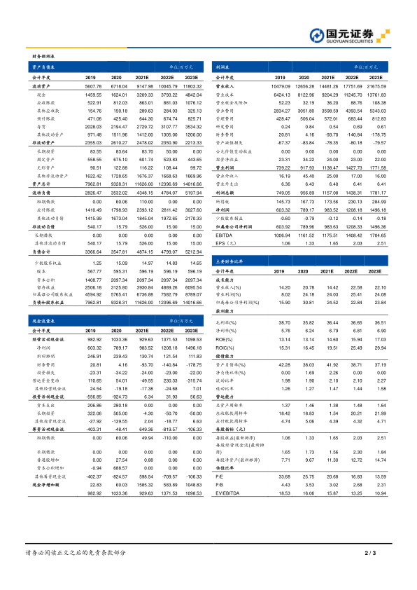 公司作为西南区域药店龙头,深耕云南并逐步推进重点区域布局战略,注重下沉市场开拓,快速扩张的门店进入爬坡期,业绩有望实现高增速。我们预计公司2021-2023年实现收入144.81/177.52/216.76亿元,归母净利润9.84/12.08/14.96亿元,对应每股收益为1.65/2.03/2.51元/股,对应当前股价PE分别为21/17/14倍,维持公司“买入”的投资评级。