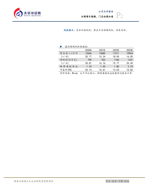 投资建议:我们预计2022-2023年净利润分别为11.05/13.31亿元,同比增速分别为19.77%/20.45%,EPS分别为1.85元/2.23元,对应当前股价分别为11倍和8倍PE。公司经营效率提升,区域优势不断夯实,业绩增长稳健,处于历史估值中枢偏下。继续给予“买入”评级。