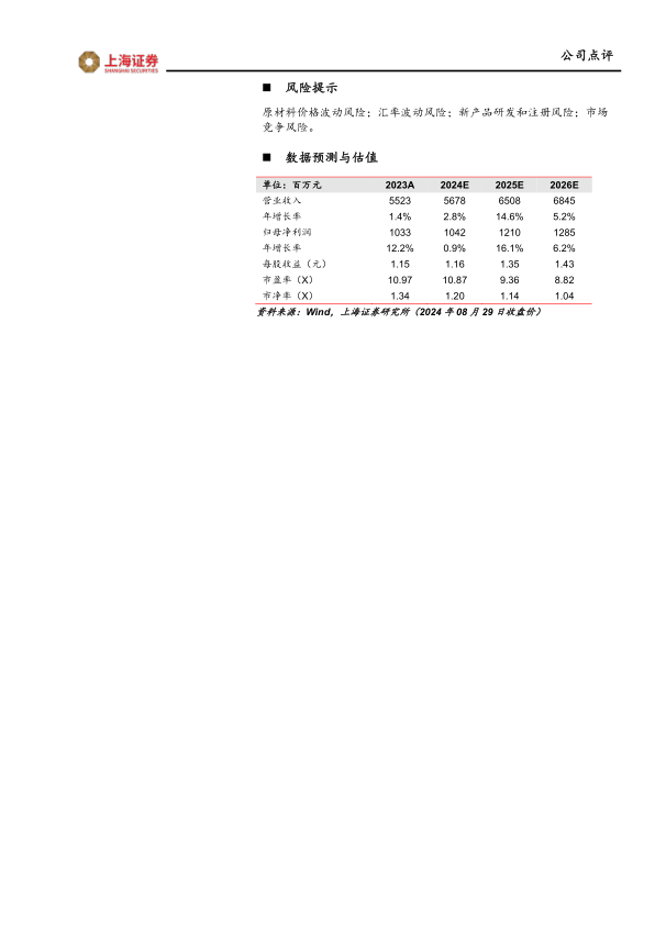 报告提示了公司面临的主要风险,包括原材料价格波动风险、汇率波动风险、新产品研发和注册风险以及市场竞争风险,这些因素可能对公司未来的业绩产生影响。