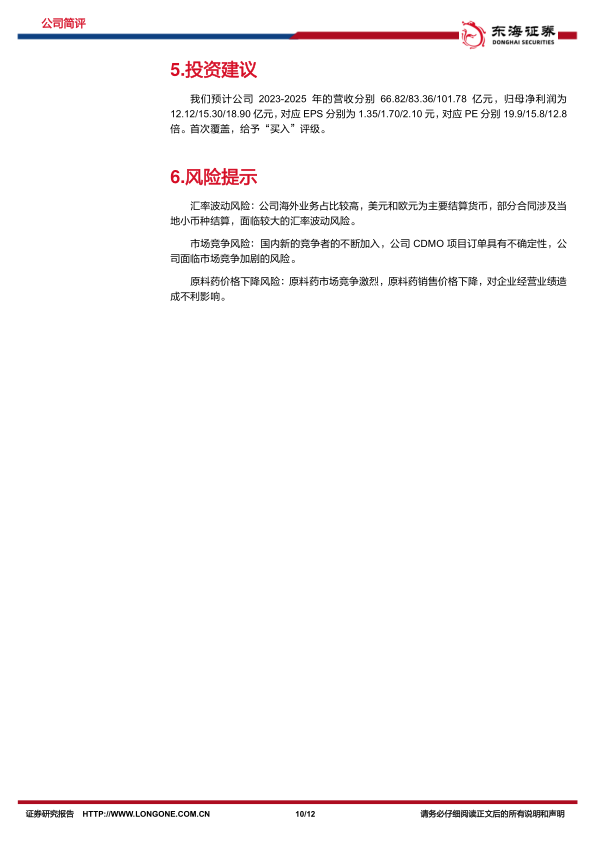 风险提示:汇率波动风险;市场竞争风险;原料药价格下降风险等。