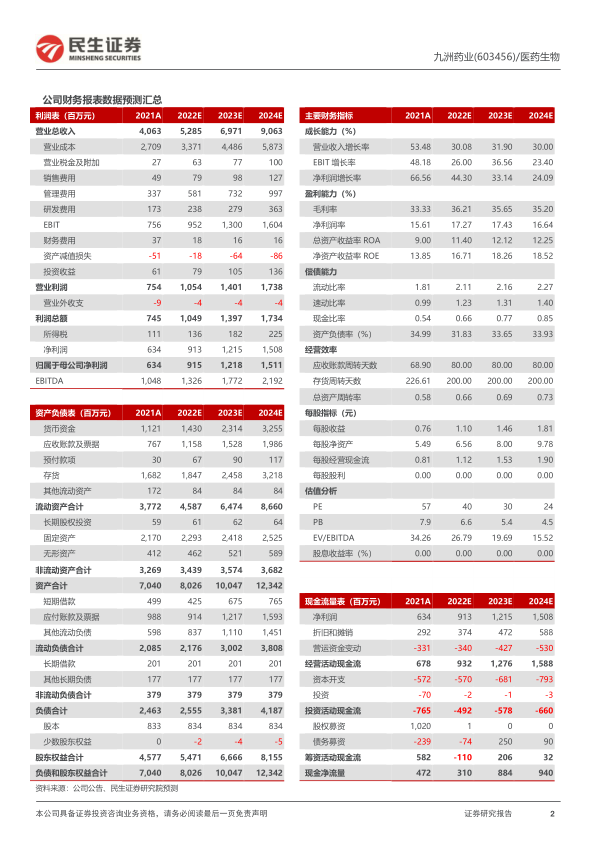 九洲药业(603456)