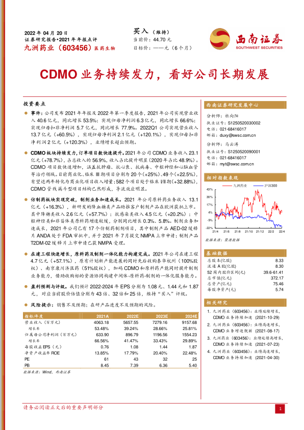 CDMO业务持续发力,看好公司长期发展