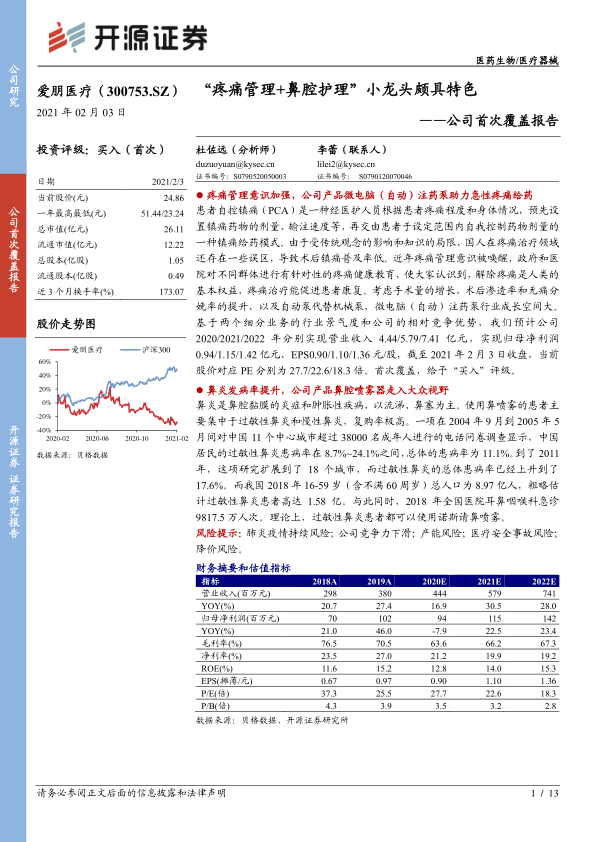 公司首次覆盖报告:“疼痛管理+鼻腔护理”小龙头颇具特色