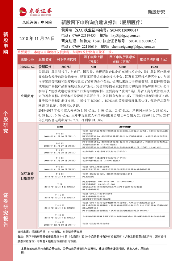本报告对爱朋医疗的新股申购价值进行分析,建议申购价格为15.80元,申购上限为500万股,网下申购所需最低市值为5000万元。