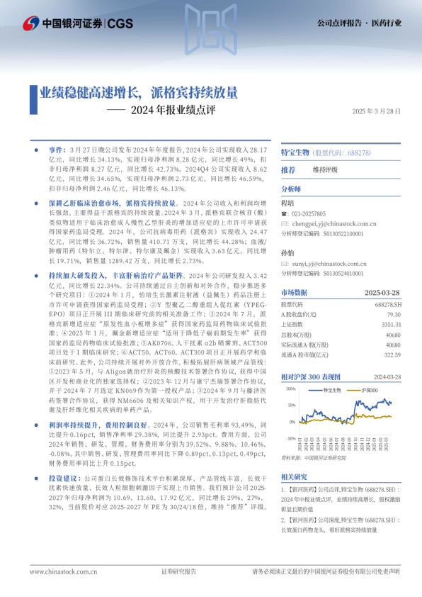 2024年报业绩点评:业绩稳健高速增长,派格宾持续放量