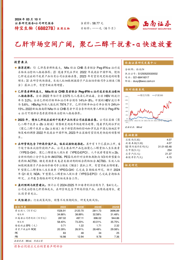本报告分析指出,特宝生物凭借其在乙肝治疗领域的领先地位和强大的研发实力,有望在广阔的乙肝市场中实现快速增长。公司核心产品派宾格受益于市场竞争格局的优化和临床治愈理念的推广,业绩有望加速释放。同时,公司丰富的在研管线也将为长期发展提供有力支撑。