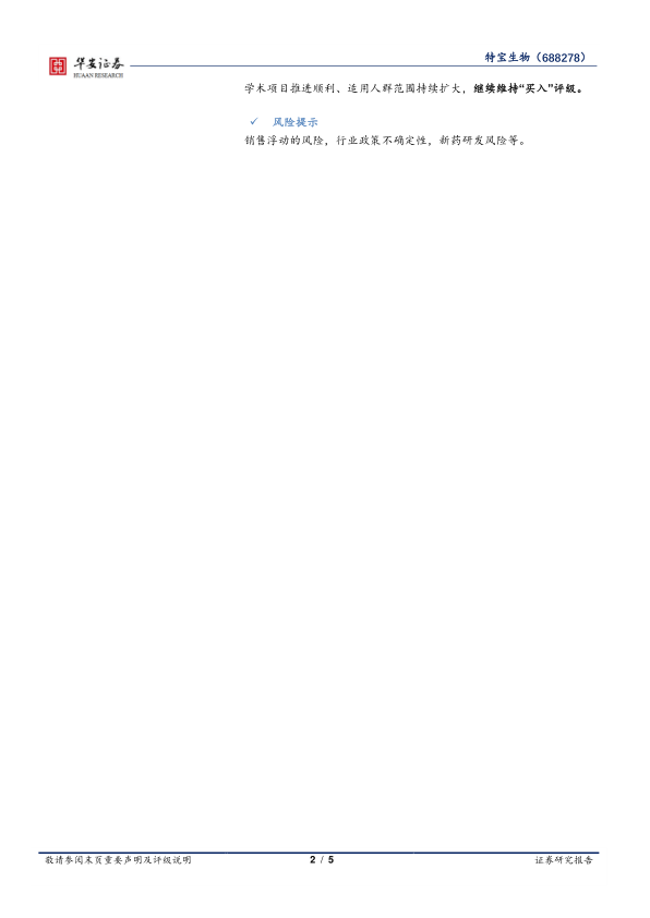 维持“买入”评级。预计公司2023-2025年营业收入分别为21.06亿元、27.15亿元、35.05亿元,分别同比增长37.9%/29.0%/29.1%;实现归母净利润分别为4.60亿元、6.58 亿元、9.25 亿元,同比增长60.3%/42.9%/40.6%,对应的PE为46X/32X/23X。看好公司派格宾产品竞争格局、产品学术项目推进顺利、适用人群范围持续扩大,继续维持“买入”评级。