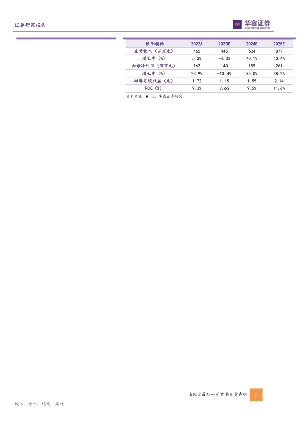 预测公司2023-2025年收入分别为4.45、6.24、8.77亿元,EPS分别为1.15、1.55、2.14元,当前股价对应PE分别为28.2、20.9、15.1倍,公司是国内注射穿刺器械龙头企业,二十年产业深耕建立了深厚的客户和品牌基础,看好新产能落地后获客能力提升,维持“买入”投资评级。