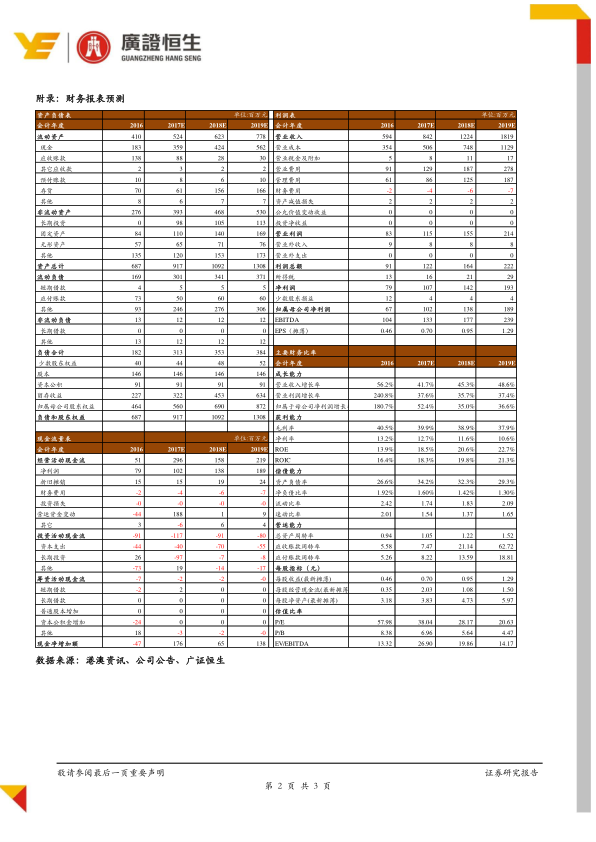 按照测算,公司17-19年EPS分别为0.70、0.95、1.29元,对应38、28、21倍PE。考虑到业绩成长性和小市值溢价,给予公司75倍PE,目标价为53元,维持“强烈推荐”评级。