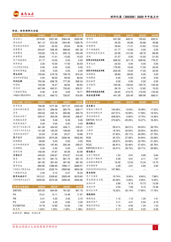 本报告对理邦仪器(300206)2020年年报进行了深度分析,核心观点如下: