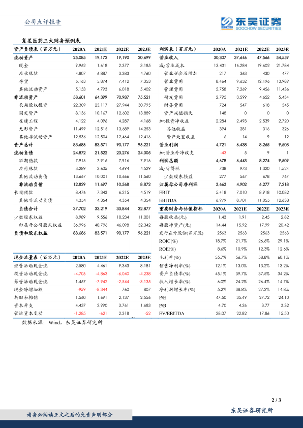 本报告对复星医药2021年半年报进行了深入分析,指出公司业绩符合预期,创新与国际化战略引领高质量发展。公司通过加大研发投入、优化产业结构、积极推进内部资源整合等方式,实现稳健增长。东吴证券维持对复星医药“买入”投资评级,看好公司未来发展前景。报告还对公司的财务报表进行了详细的预测和分析,为投资者提供了有价值的参考信息。