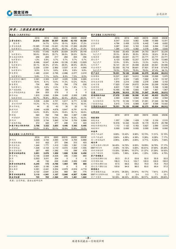 我们维持盈利预测,预计公司 2021/22/23 年营收 360.92/421.53/493.9 亿元,归属母公司净利润 44.46/53.9/64.45 亿元, EPS1.74/2.10/2.52 元。;目前股价对应 21/22/23 年 27/24/20xPE,维持“买入”评级。