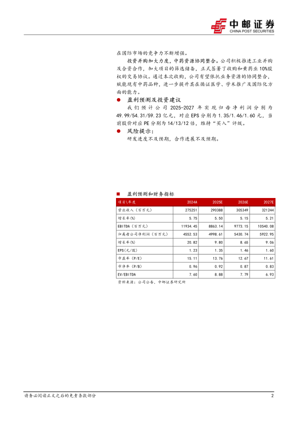 投资并购加大力度,中药资源协同整合。公司积极推进工业并购及合资合作,加大项目的筛选储备,正式签署了收购和黄药业10%股权的交易协议。通过本次收购,公司有望依托业务资源的协同整合,赋能现有中药品种,进一步提升其在循证医学、学术推广及国际化方面的能力。
