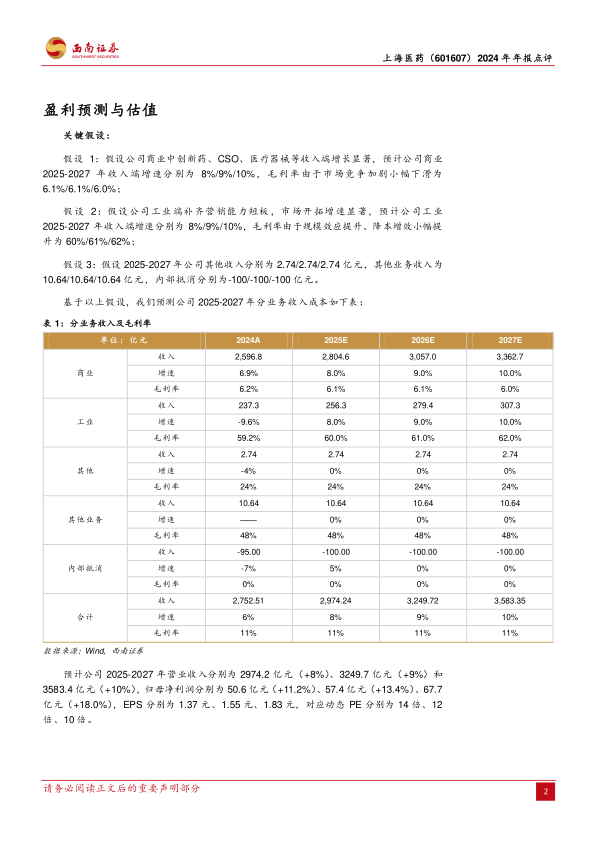 本报告对上海医药(601607)2024年年报进行了深度分析,核心观点如下: