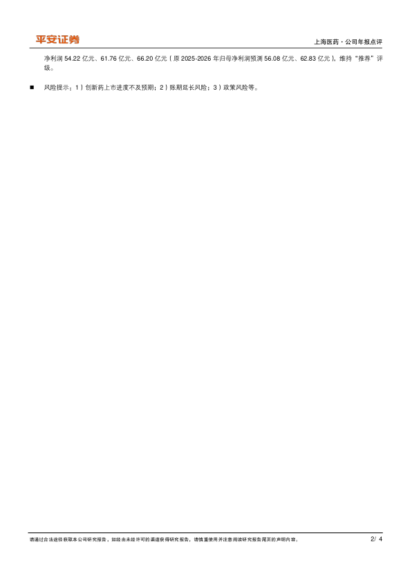 投资建议:公司具备深厚的国资背景和全产业链布局。随着创新药管线的逐步兑现、中药板块的持续增长以及商业板块的稳定发挥,公司未来业绩有望保持较快增长。我们预计公司2025/2026/2027年分别实现归母
