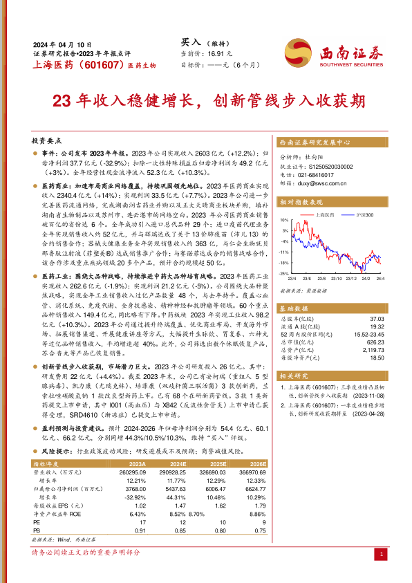 本报告对上海医药(601607)2023年年报进行了深度分析,核心观点如下: