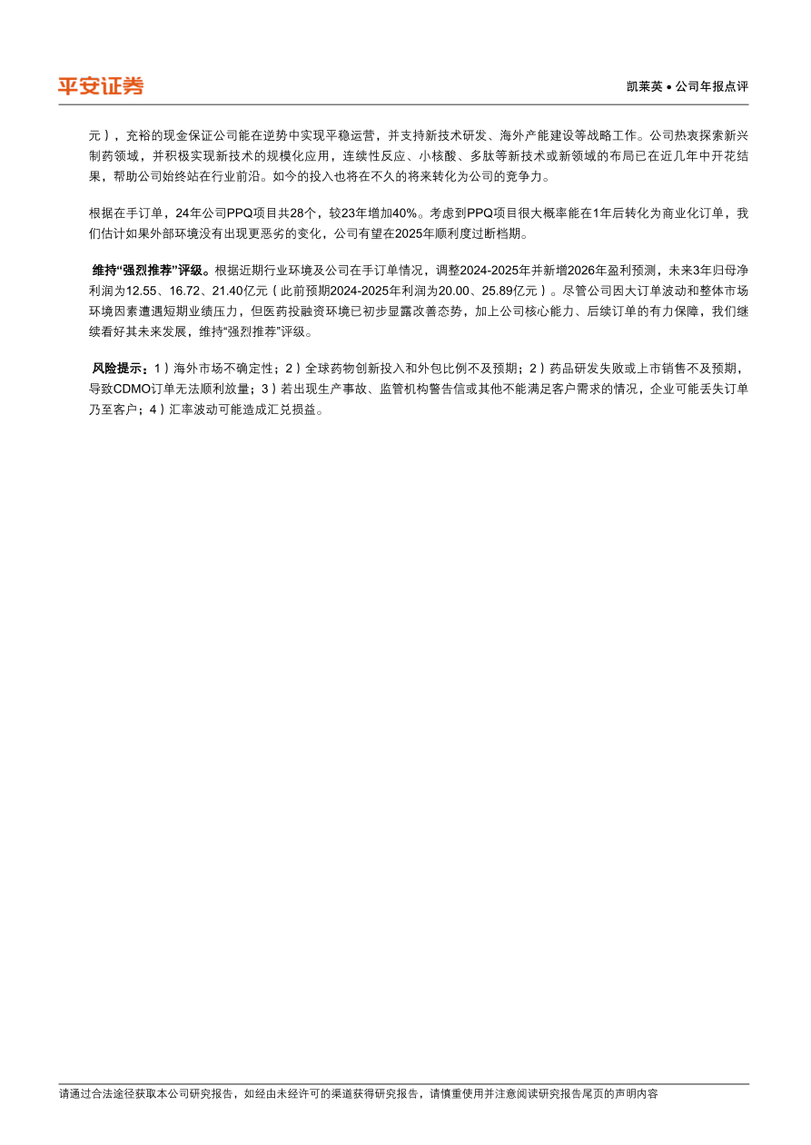 尽管短期内面临利润率压力,但考虑到医药投融资环境的改善以及公司强大的核心竞争力,平安证券维持对凯莱英“强烈推荐”评级,并调整了未来三年的盈利预测,认为公司有望在2025年顺利度过断档期。