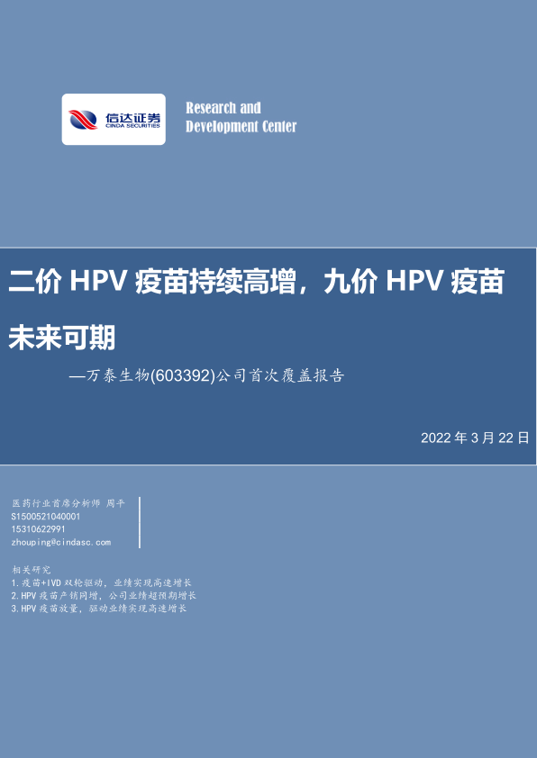 公司首次覆盖报告:二价HPV疫苗持续高增,九价HPV疫苗未来可期