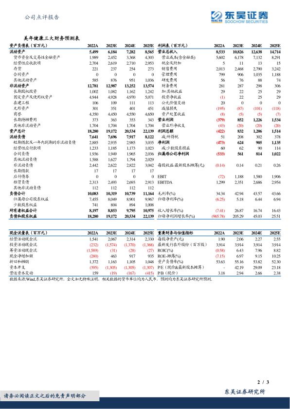 鉴于公司在数字化营销体系和创新产品推广方面的投入,分析师将美年健康2023-2025年归母净利润预测由6.37/9.24/12.66亿元下调至5.61/8.14/10.22亿元。当前PE估值分别为42/29/23倍。尽管盈利预测有所调整,但考虑到疫后行业竞争格局优化、公司业务端快速修复、管理优化推进降本增效等积极因素,分析师维持“买入”评级,认为公司业绩有望持续兑现。