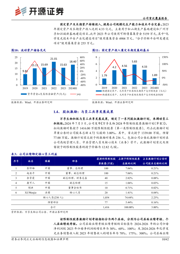 万孚生物积极推行股权激励计划,以调动员工积极性并共享发展成果。2024年7月,公司发布2024年限制性股票激励计划草案,拟向236名激励对象授予1416万股限制性股票,占公司股本总额的3.00%,授予价格为12.82元/股。该计划设定了公司层面业绩考核目标,包括2024-2026年归母净利润较2023年分别增长30%、60%、100%,或化学发光业务销售收入分别增长70%、175%、300%。此举将公司业绩与管理层及核心员工利益紧密绑定,有望进一步提升团队凝聚力、稳定性和经营效率。