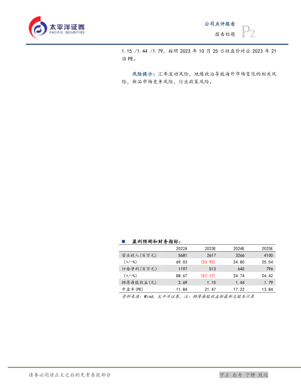 风险提示:汇率波动风险,地缘政治导致海外市场变化的相关风险,新品市场竞争风险,行业政策风险。
