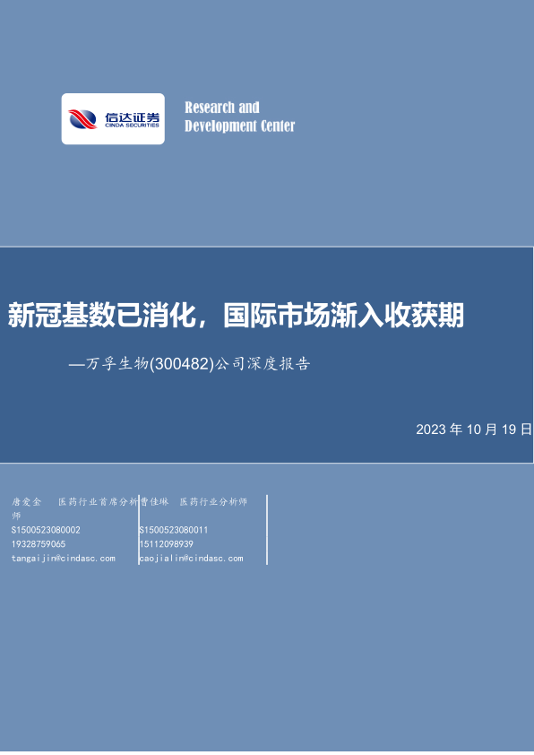 公司深度报告:新冠基数已消化,国际市场渐入收获期