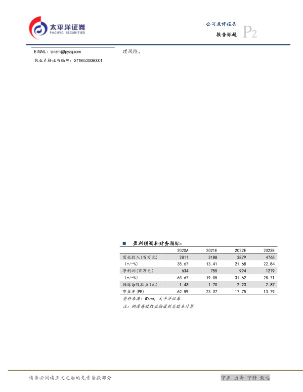 盈利预测与投资评级:基于地方采购政策变动以及局部出现聚集性疫情对公司诊断产品销售的影响,我们下调业绩预期:预计2021-2023营业收入分别为31.88亿/38.79亿/47.65亿,同比增速分别为31%/22%/23%;归母净利润分别为7.55亿/9.94亿/12.79亿,分别增长19%/32%/29%;EPS分别为1.70/2.23/2.87,按照2021年10月25日收盘价对应2021年23倍PE。维持“买入”评级。