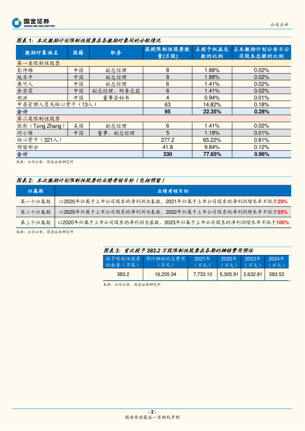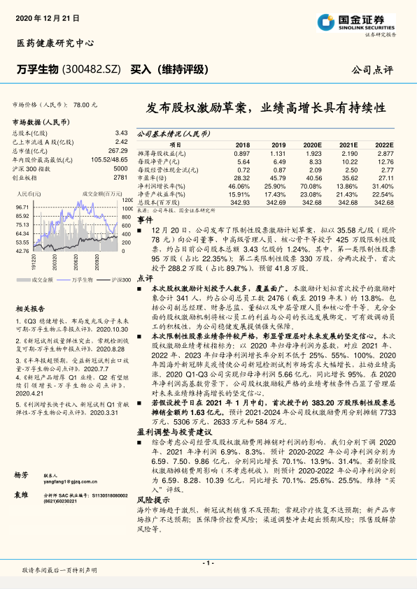 本报告分析了万孚生物的股权激励计划,认为该计划覆盖面广,有利于激发员工积极性,并彰显了管理层对公司未来业绩高增长的信心。尽管股权激励费用摊销会对利润产生一定影响,但维持对公司“买入”评级。同时,报告也提示了海外市场竞争、常规诊疗恢复、医保政策等风险因素。
